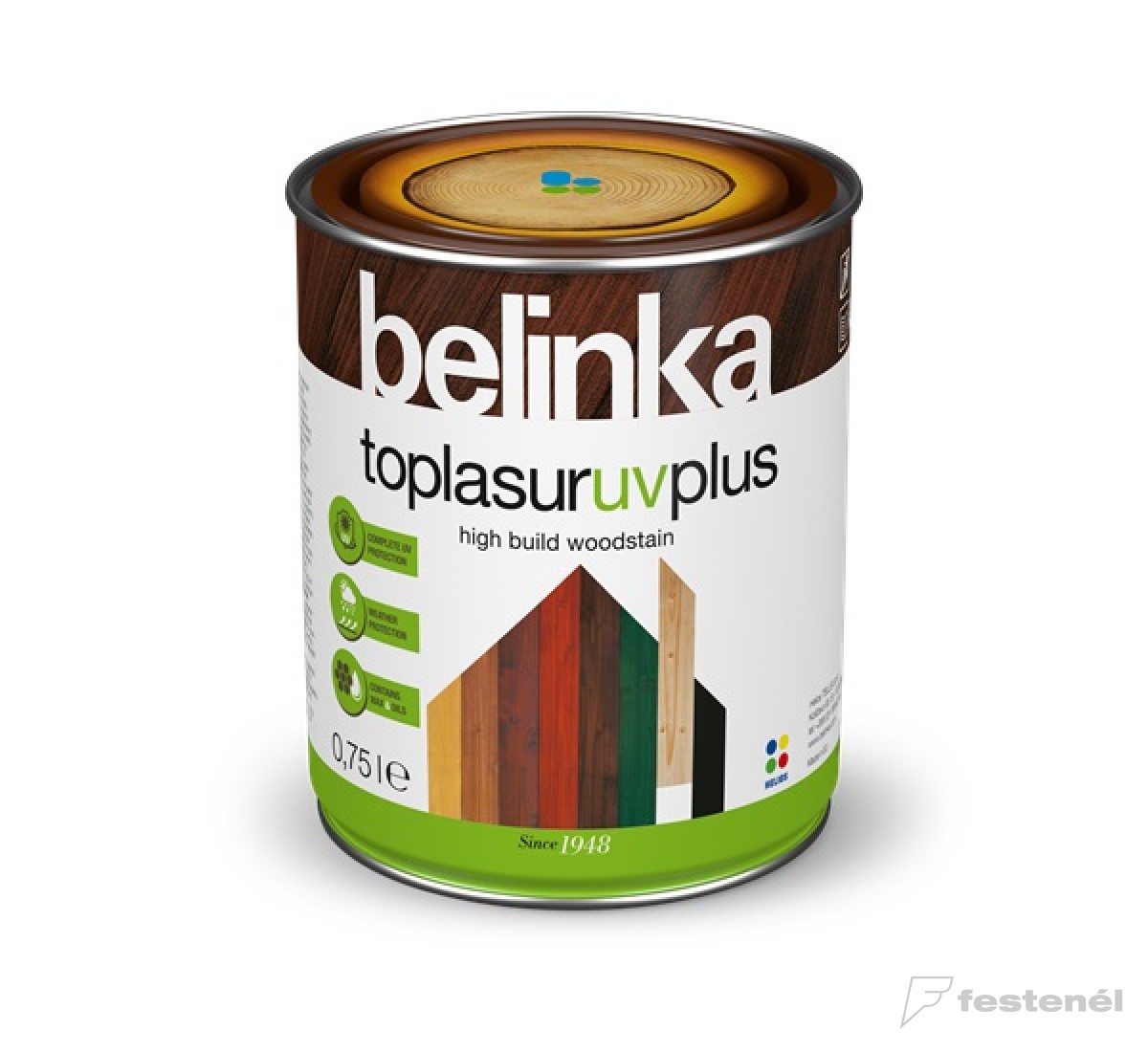 A Toplasur UV Plus vastaglazúr, amely különösen alkalmas a szélsőséges időjárási viszonyoknak kitett fa védelmére.